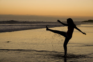 I like this picture of her heading out towards the water. My son says she looks like the size of a seagul in front of that big ocean.